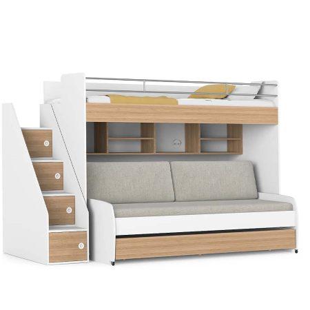 Opklap stapelbed 3 personen – Icon -houtlook – met bank grijs