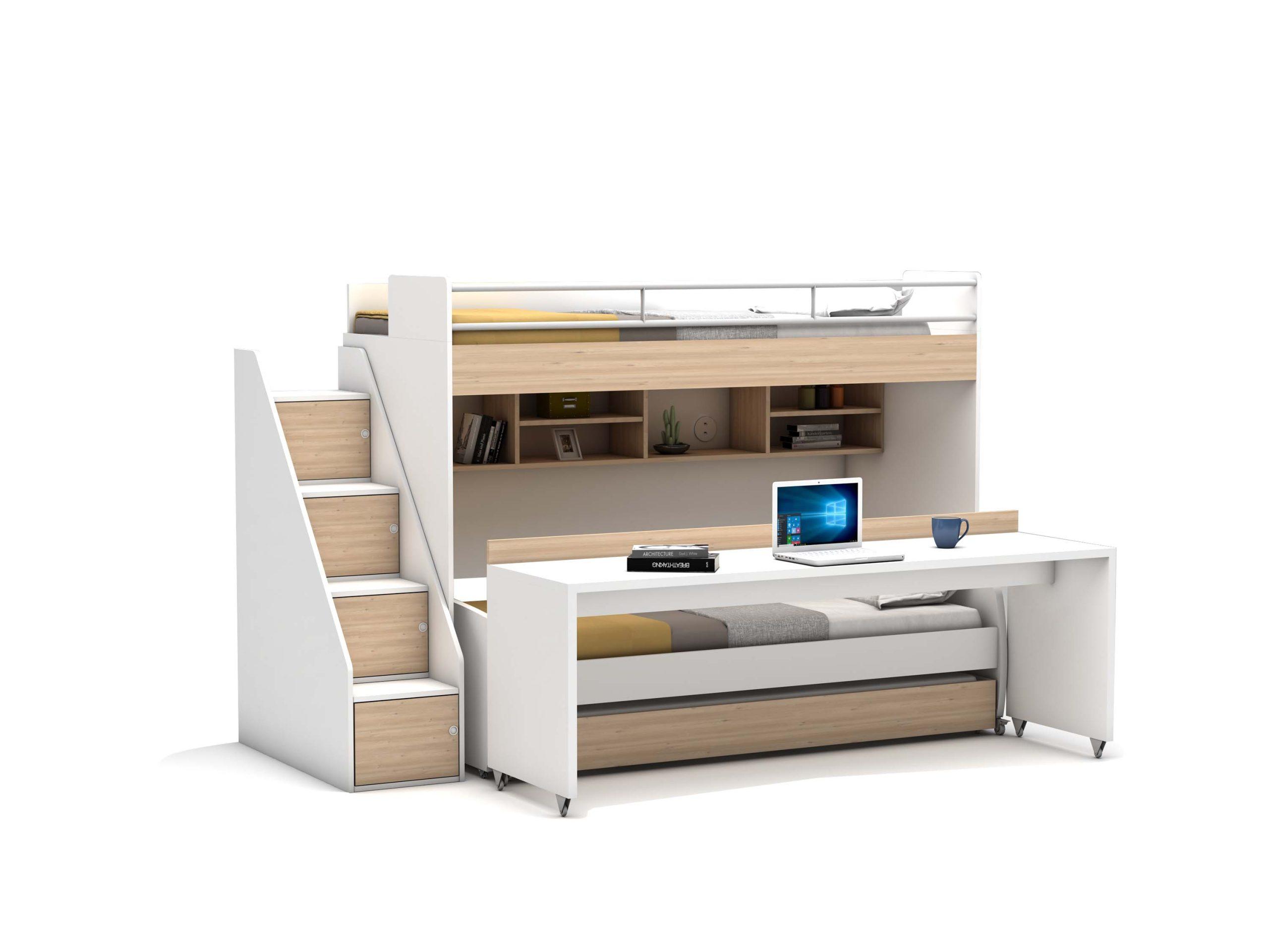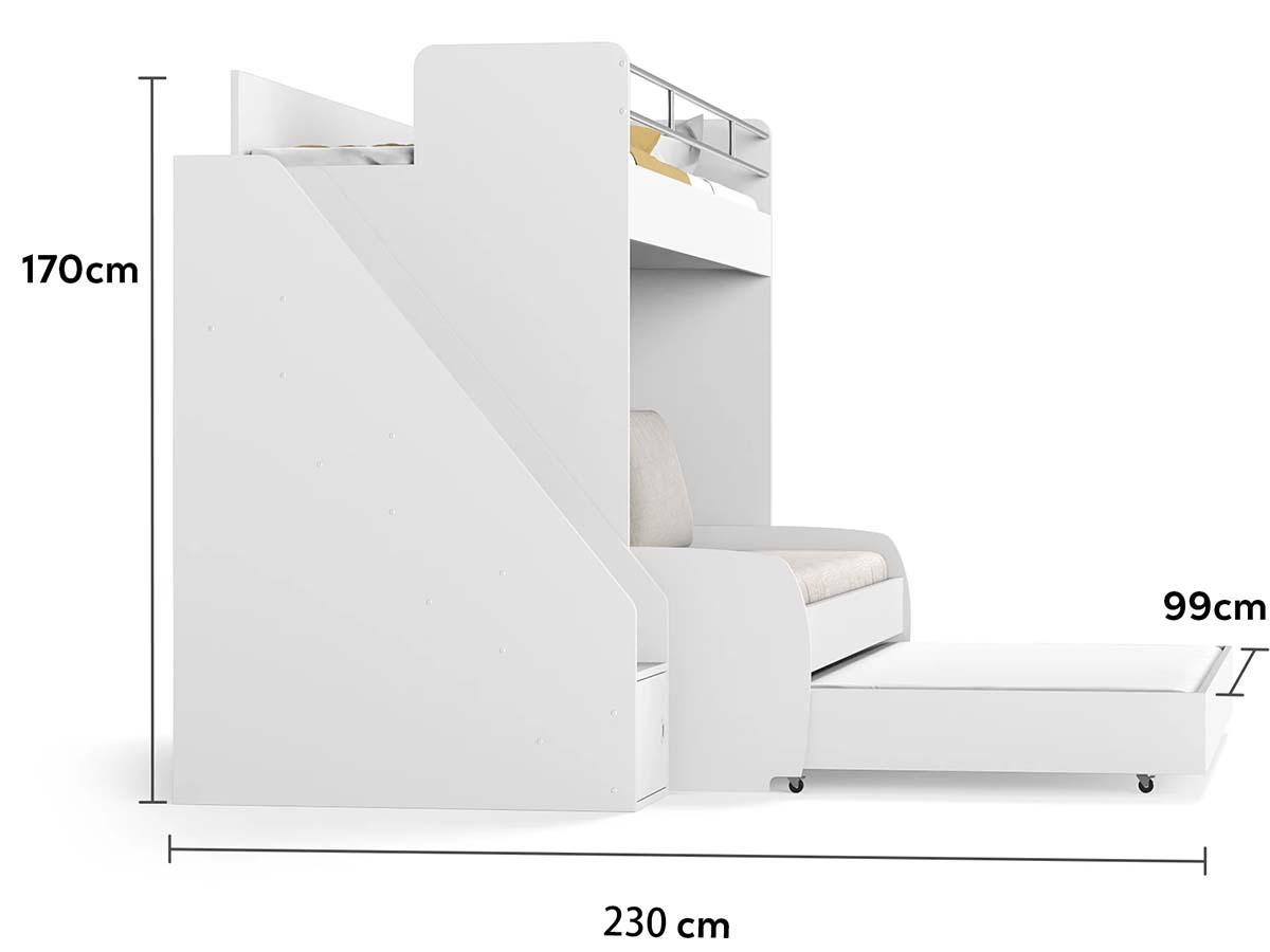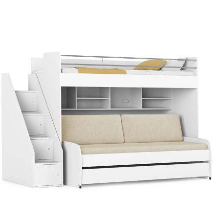 Opklap stapelbed 3 personen – Icon – wit met bank Crème
